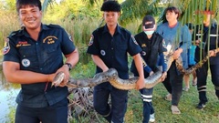 Một người đàn ông bị trăn Ấn Độ dài hơn 4 m lao ra tấn công và siết chặt chân, được người dân giải cứu sau hơn 20 phút nhưng bị thương nặng.
