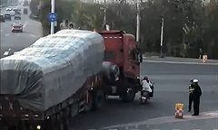 Clip: Đi vào điểm mù xe tải, người phụ nữ suýt mất mạng