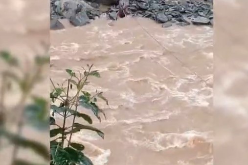 Đoạn video ghi lại cho thấy hai bé trai đều đứng ngoài lan can. Một bé thậm chí còn buông thõng hai chân, chỉ bám vào tấm kính và đu người như đang "hít xà đơn".